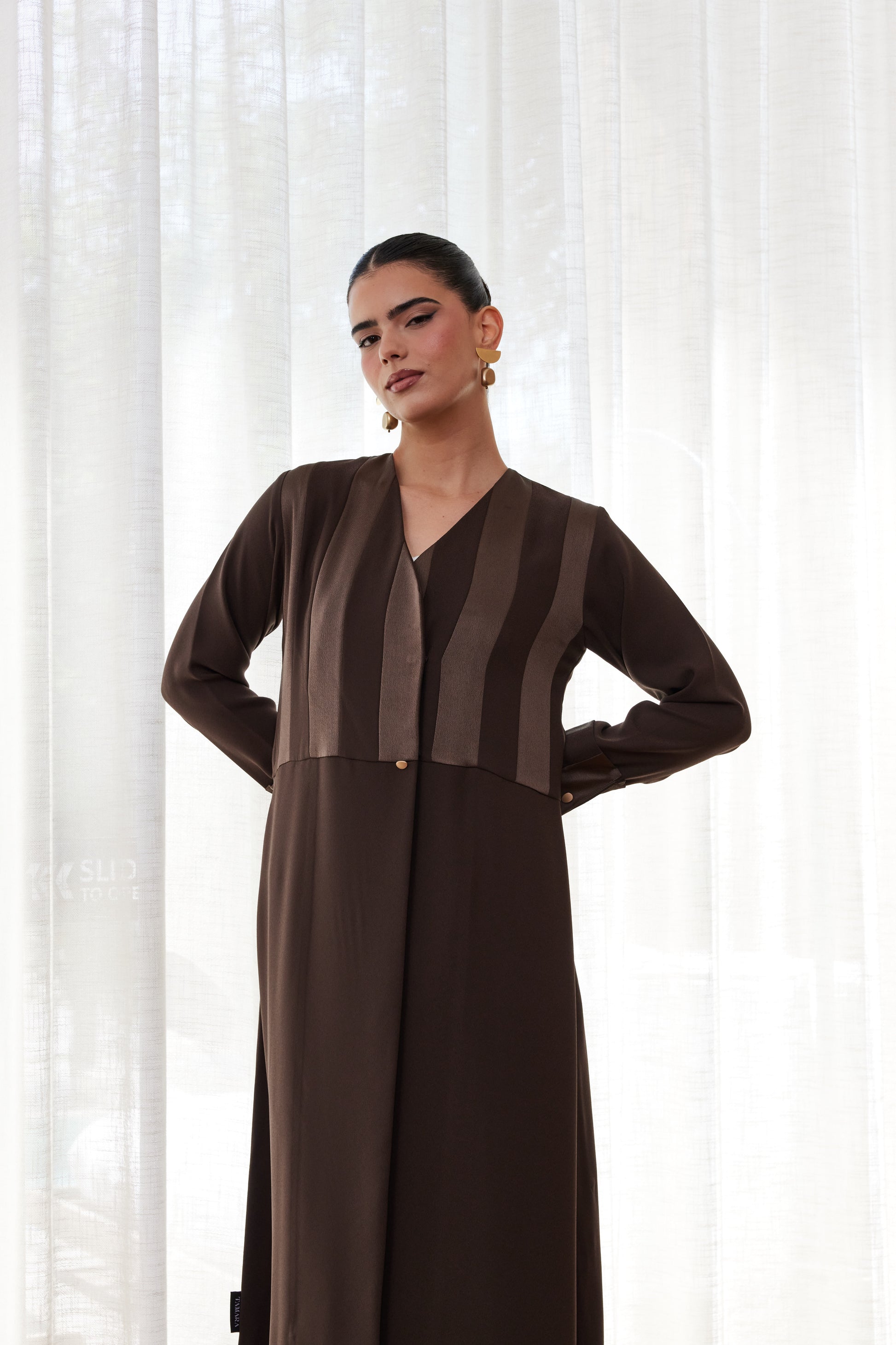Crafted from premium lightweight crepe with a balanced mix of matte and subtle shine, features a closed front and clean structured lines. The sleeves are finished with elegant cuffs button, adding a soft yet defined finish to the piece.