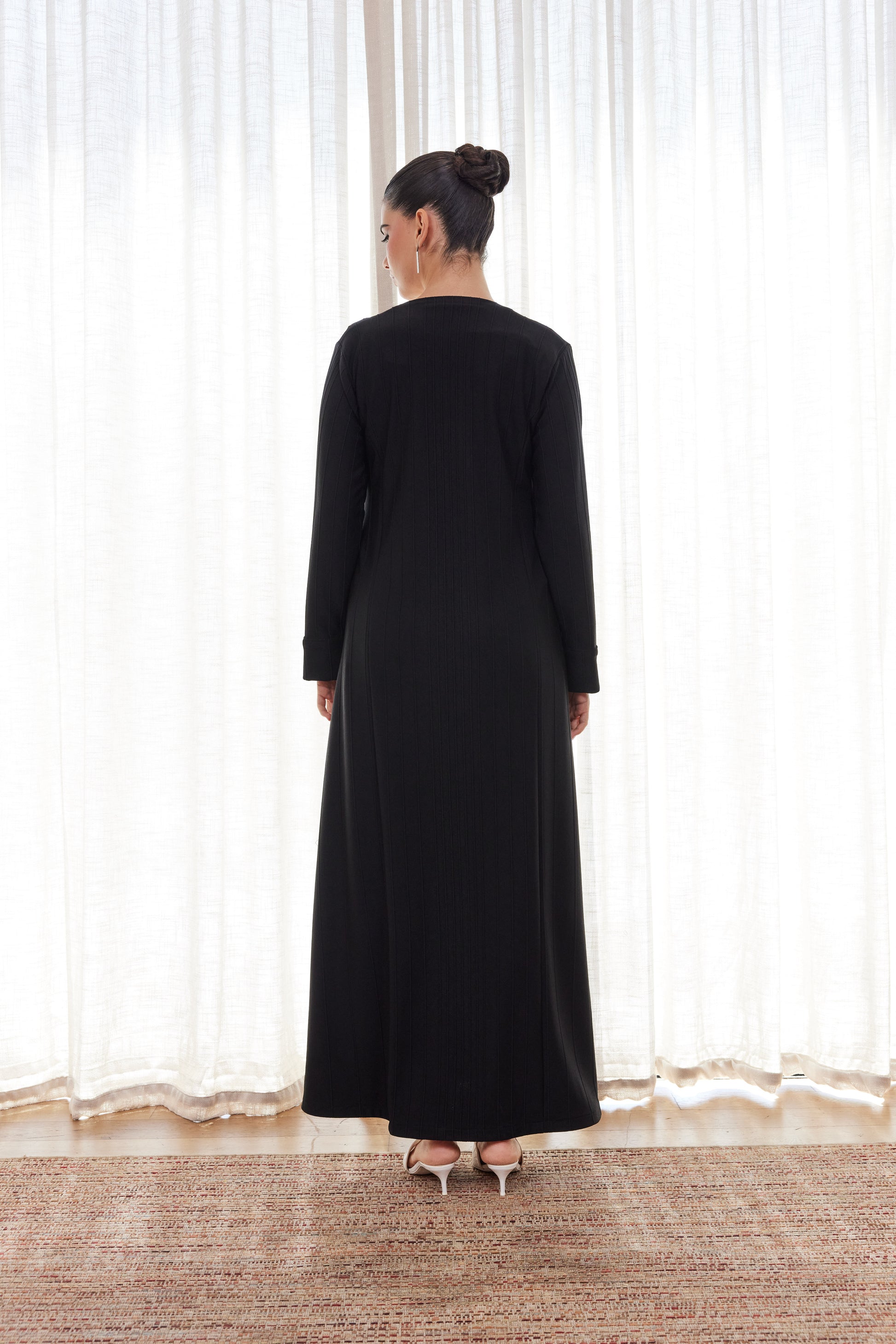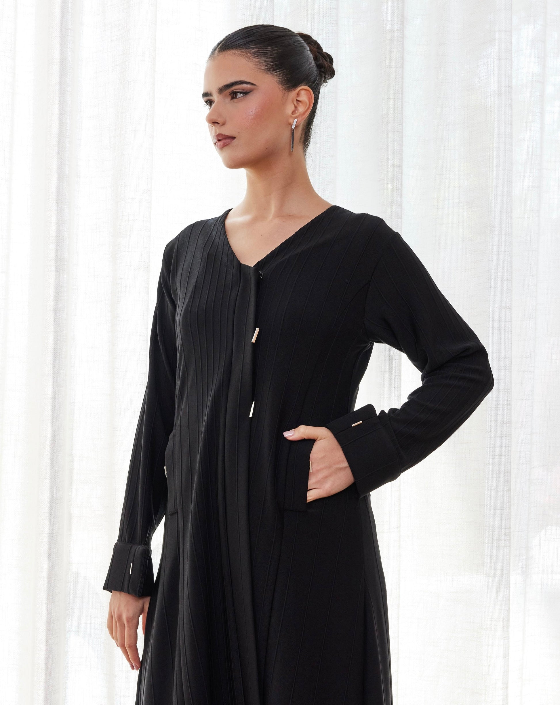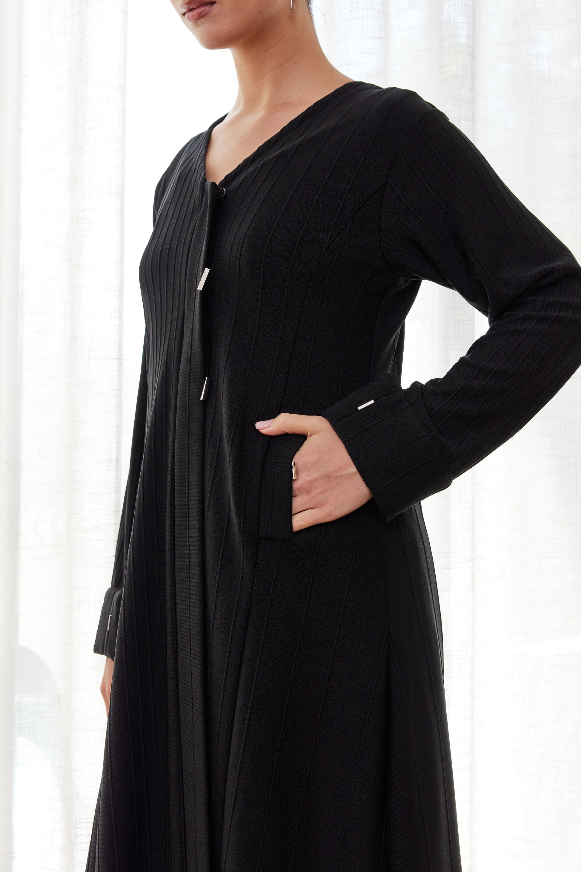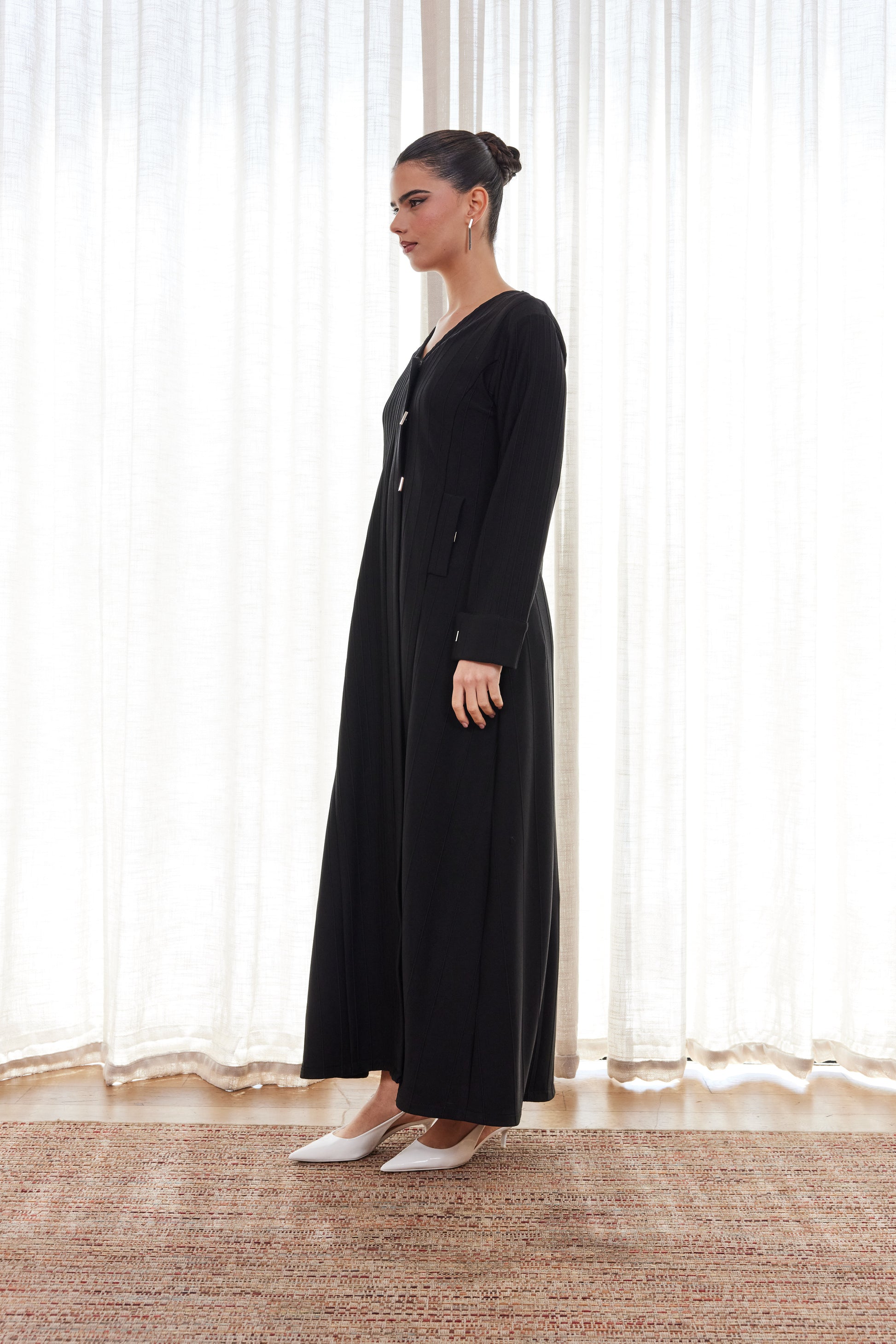 Stretch fabric Made for winter season, offers both warmth and a flattering cut designed with side pockets and finished with elegant silver metal detailing.